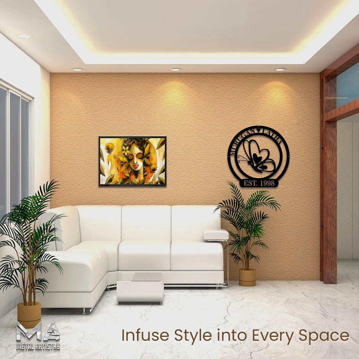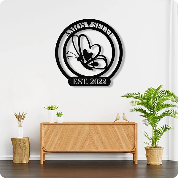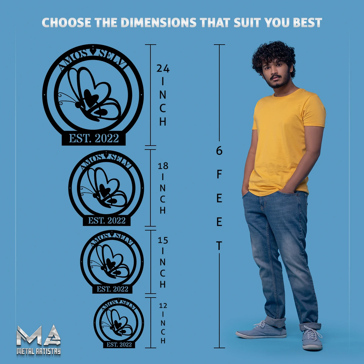 Discover Butterfly Bliss Personalized Metal Sign by Metal Artistry, a beautifully crafted piece that symbolizes eternal love. This unique design features a graceful butterfly at the center, surrounded by the names of a cherished couple and their wedding year. Printed on high-quality metal, this Butterfly Bliss sign adds a touch of romance and personalization to any space.