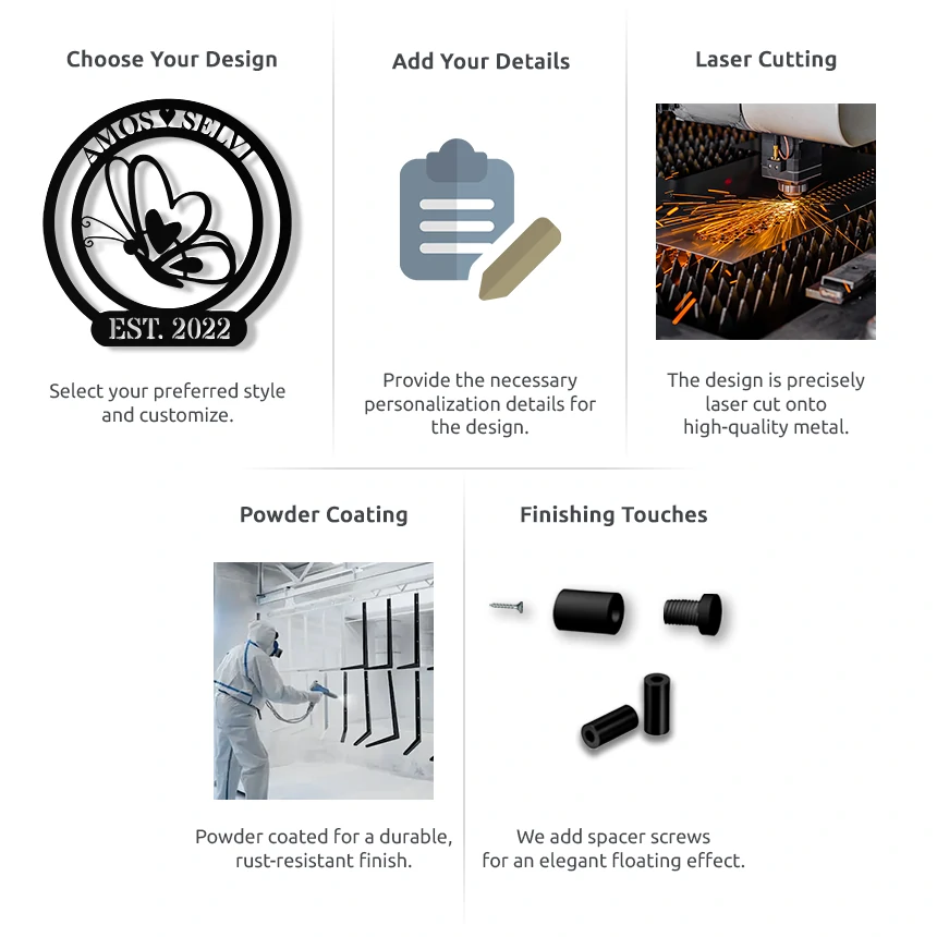 I ordered a personalized family name sign for our new home, and it turned out absolutely stunning. Not only does it add a touch of elegance to our front entrance, but it also feels like a true reflection of our family’s identity. I highly recommend Metal Artistry to anyone looking to add a unique and personalized touch to their space!
