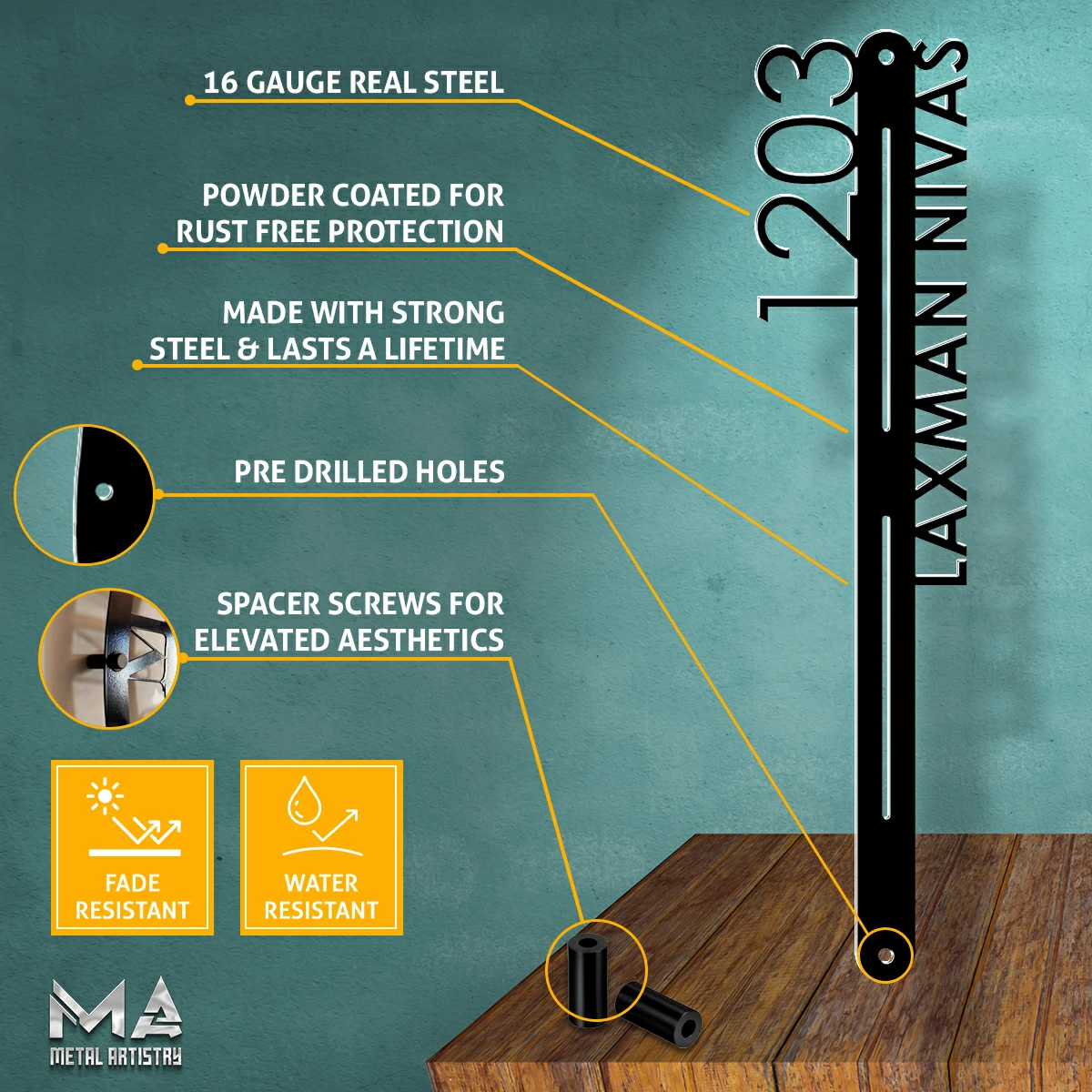 Add a timeless charm to your home with our customizable address plaque. This metal sign displays your house number in a classic design, ensuring your home stands out.