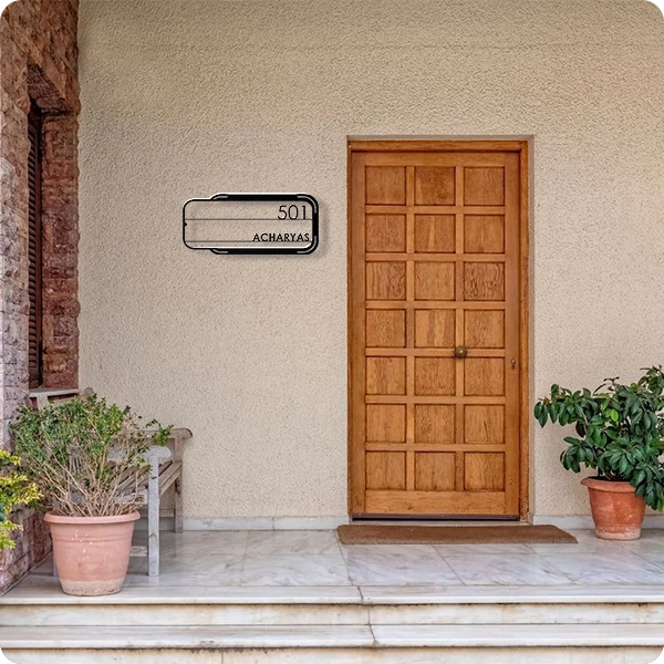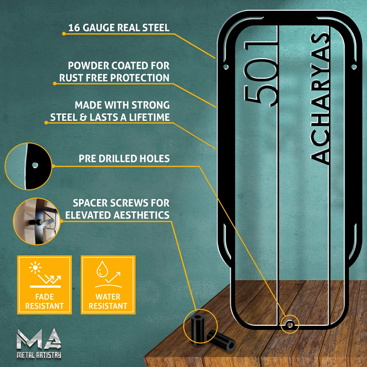Make your entrance unforgettable with this personalized metal sign featuring your name and house number. Crafted with precision, it adds a touch of sophistication to your front door.