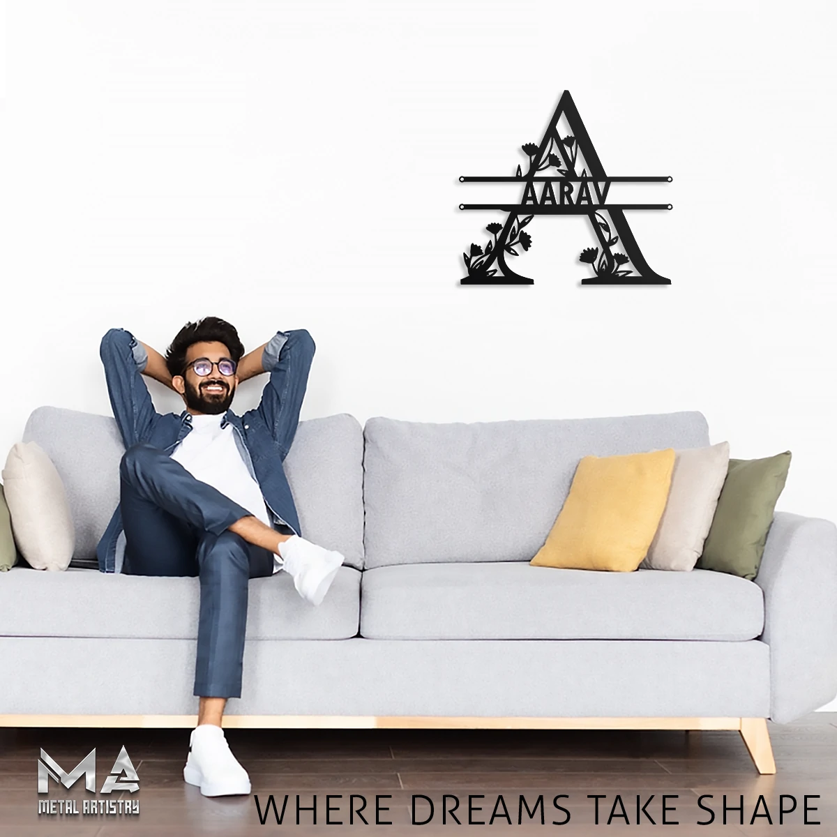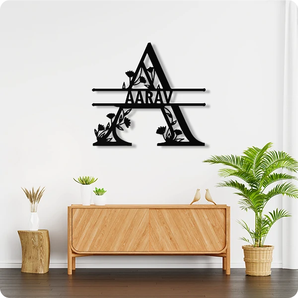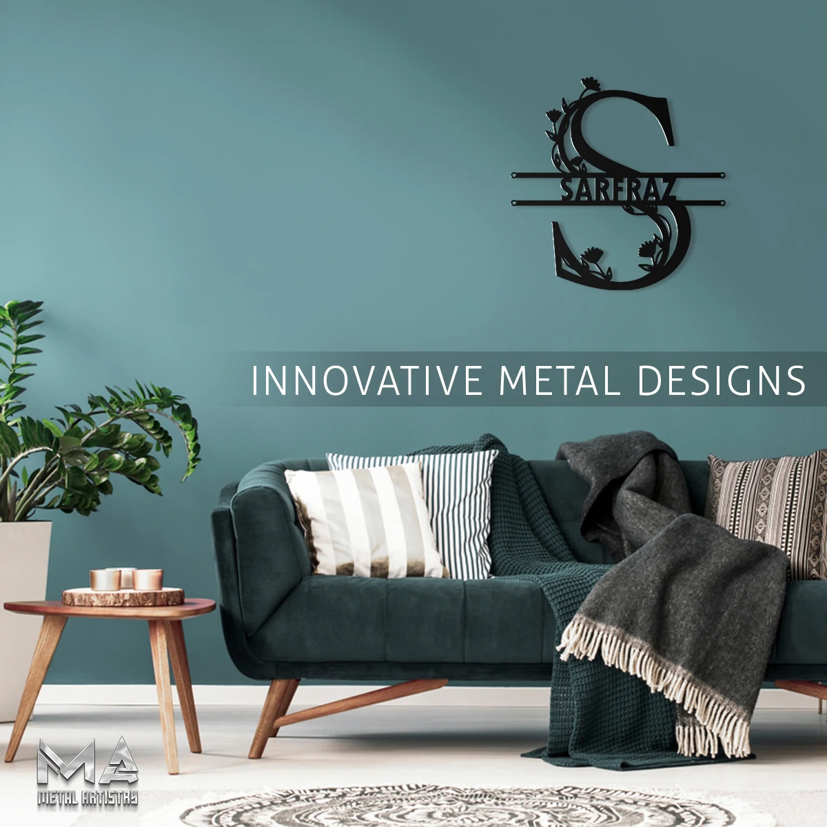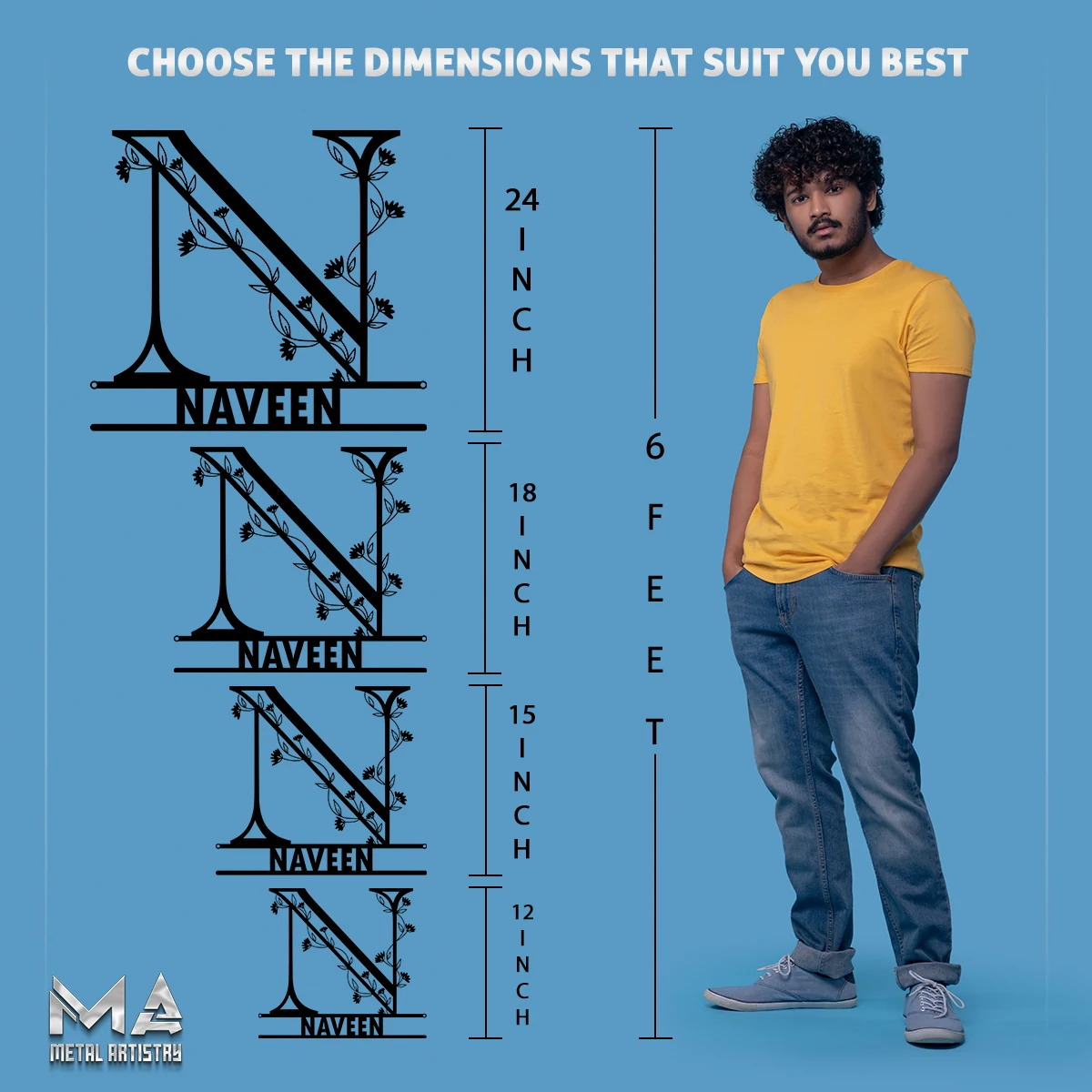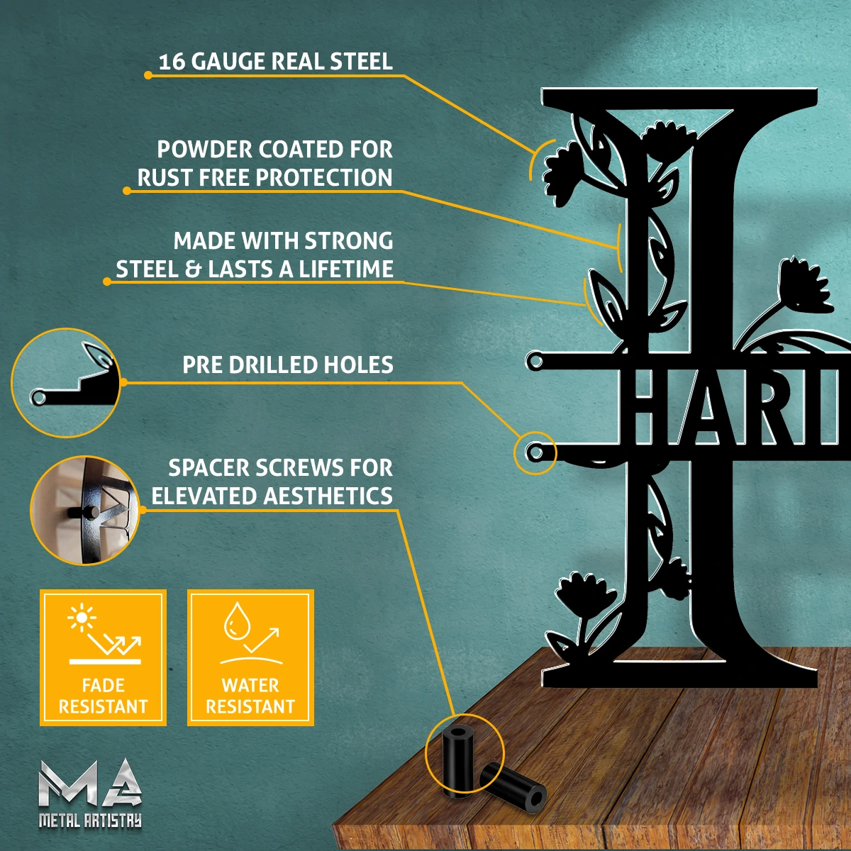 Introducing Floral Monogram Personalized Metal Sign by Metal Artistry, a stunning representation of individual style and elegance. This design features a single name accompanied by an alphabet adorned with intricate plant designs. Crafted with attention to detail on durable metal, this Floral Monogram sign is a perfect way to showcase your unique identity and add a touch of floral charm to your living space.