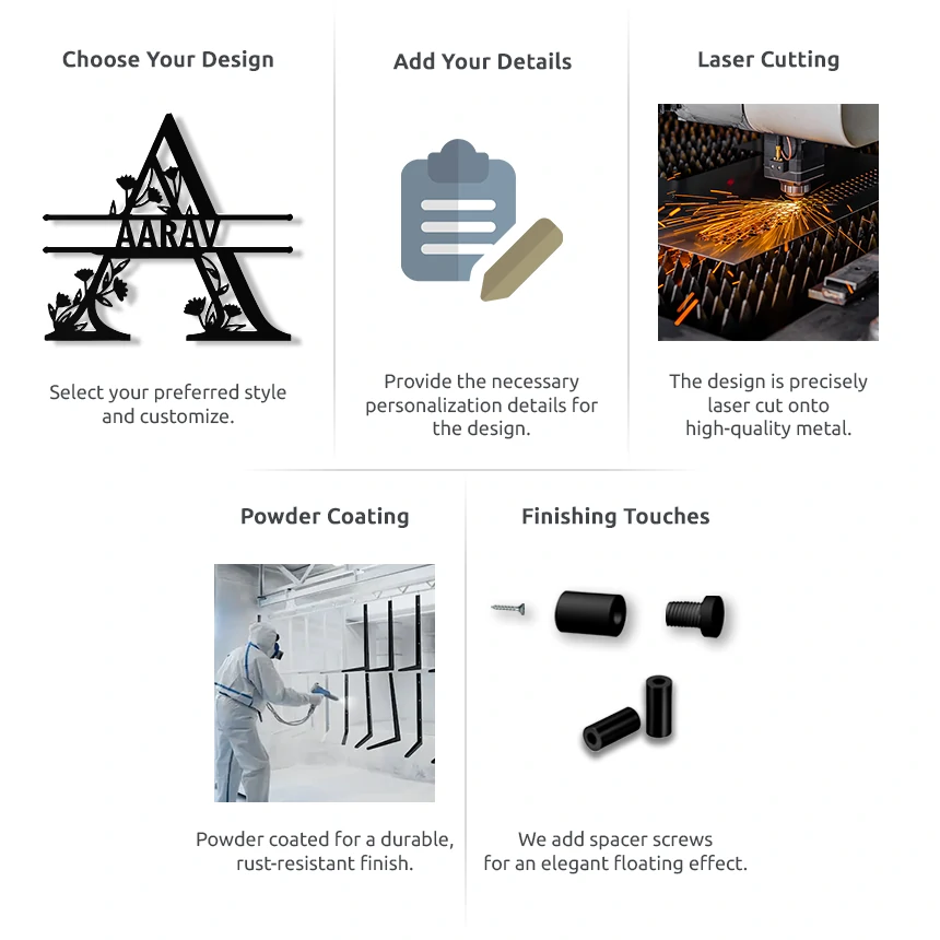 Starting with precise laser cutting for immaculate outlines, our metal artworks are then brought to life through meticulous handwork.
