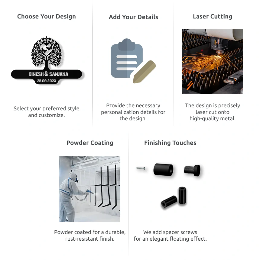 Starting with precise laser cutting for immaculate outlines, our metal artworks are then brought to life through meticulous handwork.