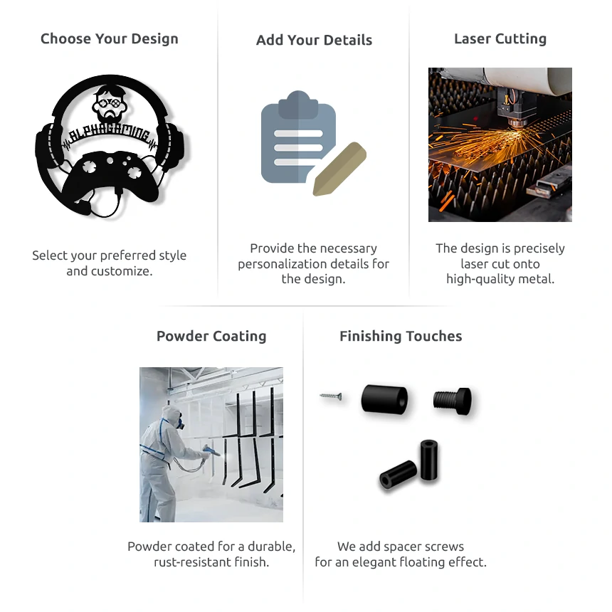 Starting with precise laser cutting for immaculate outlines, our metal artworks are then brought to life through meticulous handwork.