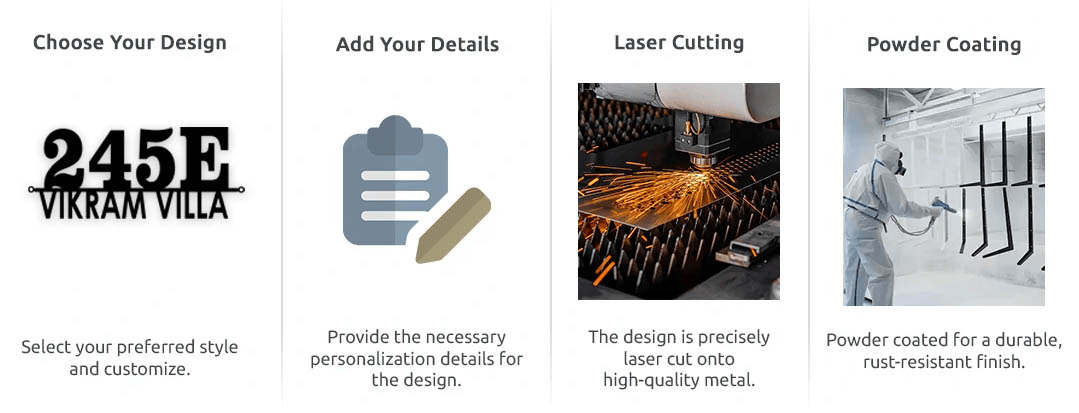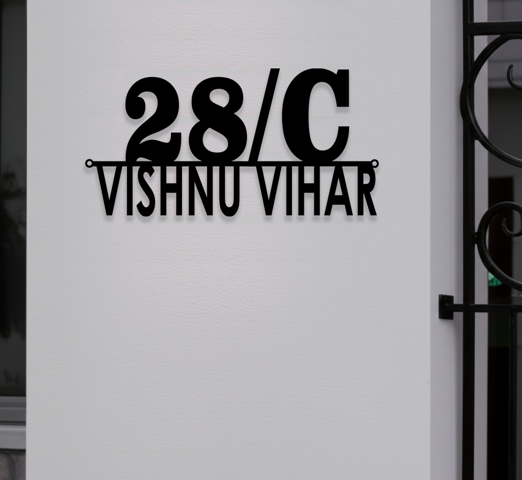 Make your entrance unforgettable with this personalized metal sign featuring your name and house number. Crafted with precision, it adds a touch of sophistication to your front door.