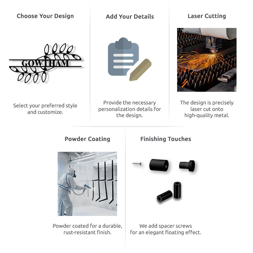 Starting with precise laser cutting for immaculate outlines, our metal artworks are then brought to life through meticulous handwork.
