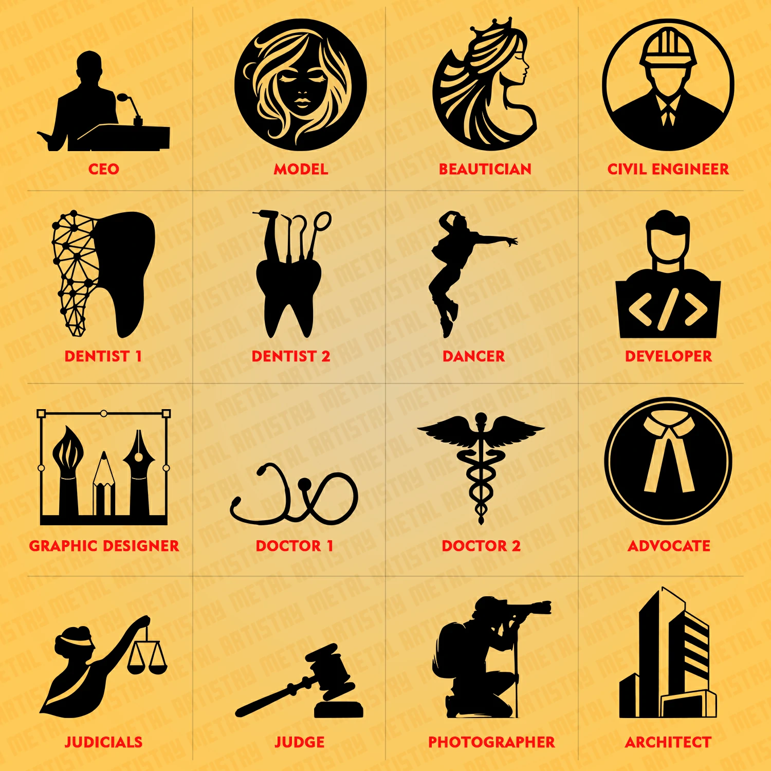 Introducing the Elite Profession Personalized Metal Sign by Metal Artistry—a perfect blend of professional pride and personal touch. This unique design features your chosen profession’s logo alongside your name, making it a sophisticated and meaningful addition to your workspace, home, or office. Whether you’re a doctor, teacher, engineer, or any other professional, this sign captures the essence of your dedication and expertise.
